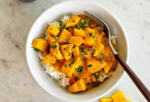 Я люблю простые рецепты, которые быстро готовятся и пачкают только одну кастрюлю. Еще лучше, когда они вкусные и полезные. Свежее манго придает блюду приятную сладость, а кокосовое молоко делает его насыщенным и сливочным. И курица просто впитывает весь этот вкус.